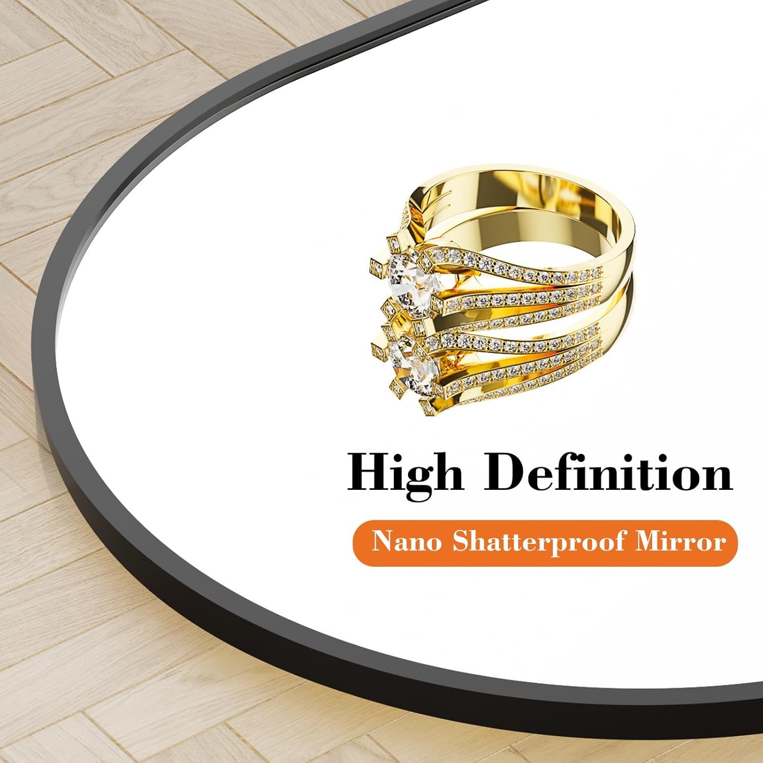 The DUMOS Arched Full Length Mirror adds elegance and functionality to any room with its modern minimalist design. Featuring a sturdy aluminum frame and shatterproof nano glass, this 64" x 21" mirror provides a clear, full-body reflection. Perfect for bedrooms, living rooms, or dressing areas, it can be easily leaned, hung, or used with its stand to complement any home décor style.
