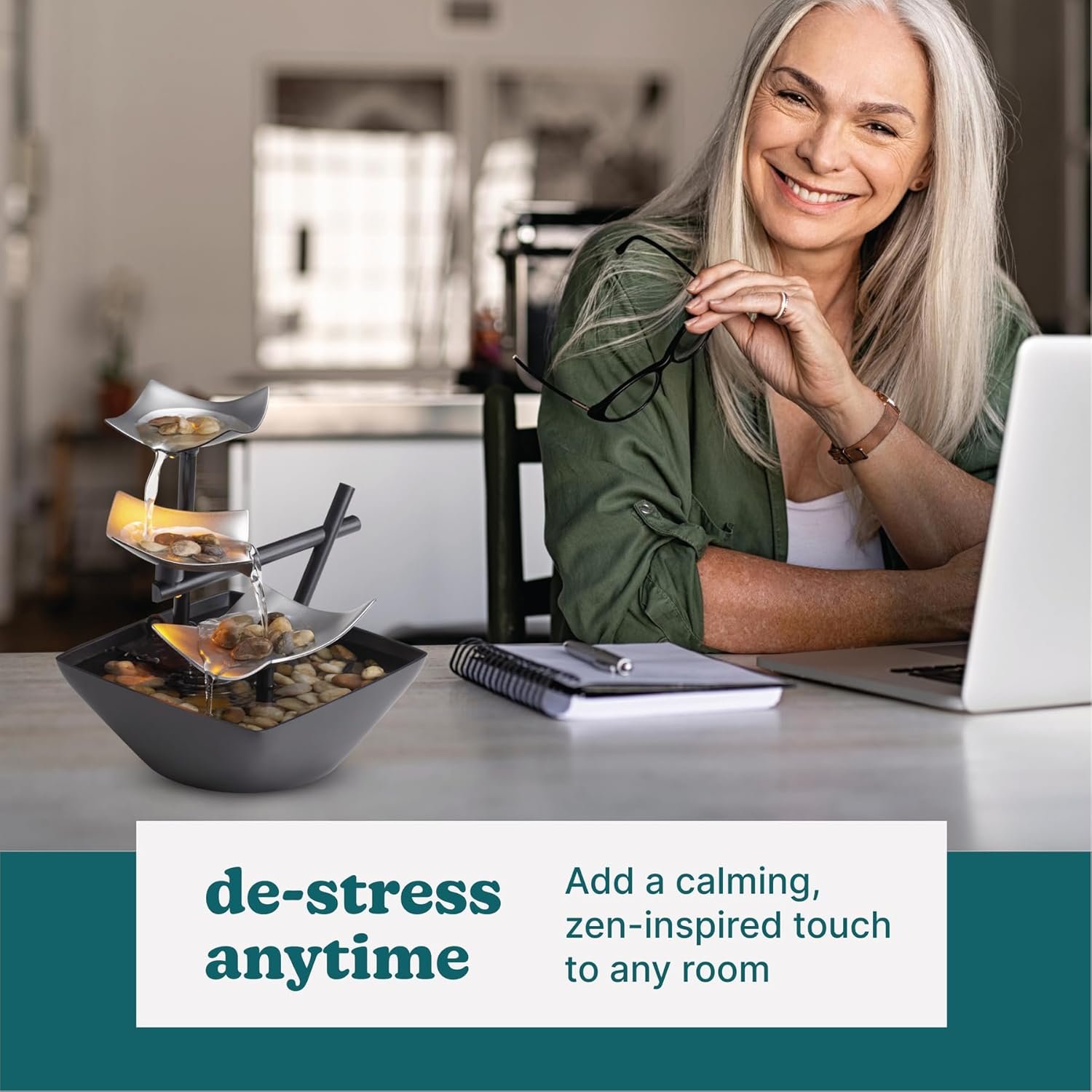 Use it as a centerpiece in your living room, a calming accent in your bedroom, or a relaxation aid in your workspace. The gentle sound of water instantly transforms the mood of the entire room.